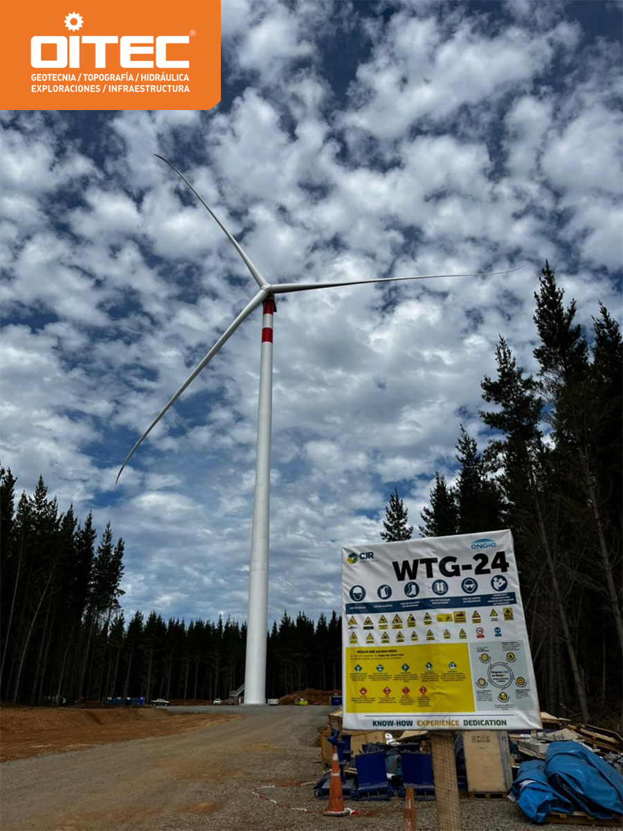 En la Región de Ñuble se desarrolla el proyecto eólico Wind PE Pemuco (Chequenes), un parque que contempla la instalación de 22 aerogeneradores de 7,5 MW cada uno, con una capacidad total instalada de 165 MW y torres de 230 metros de altura. En este contexto, OITEC brindó soporte técnico especializado en la recepción geotécnica de sellos de fundación, una etapa crítica para asegurar el correcto desempeño estructural de los aerogeneradores.